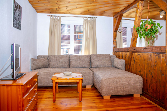 Die gemütliche 2-Zimmer-Wohnung im 1. Obergeschoss bietet auf rund 50 m² Platz für bis zu 2 Gäste – ideal für Paare oder Alleinreisende.