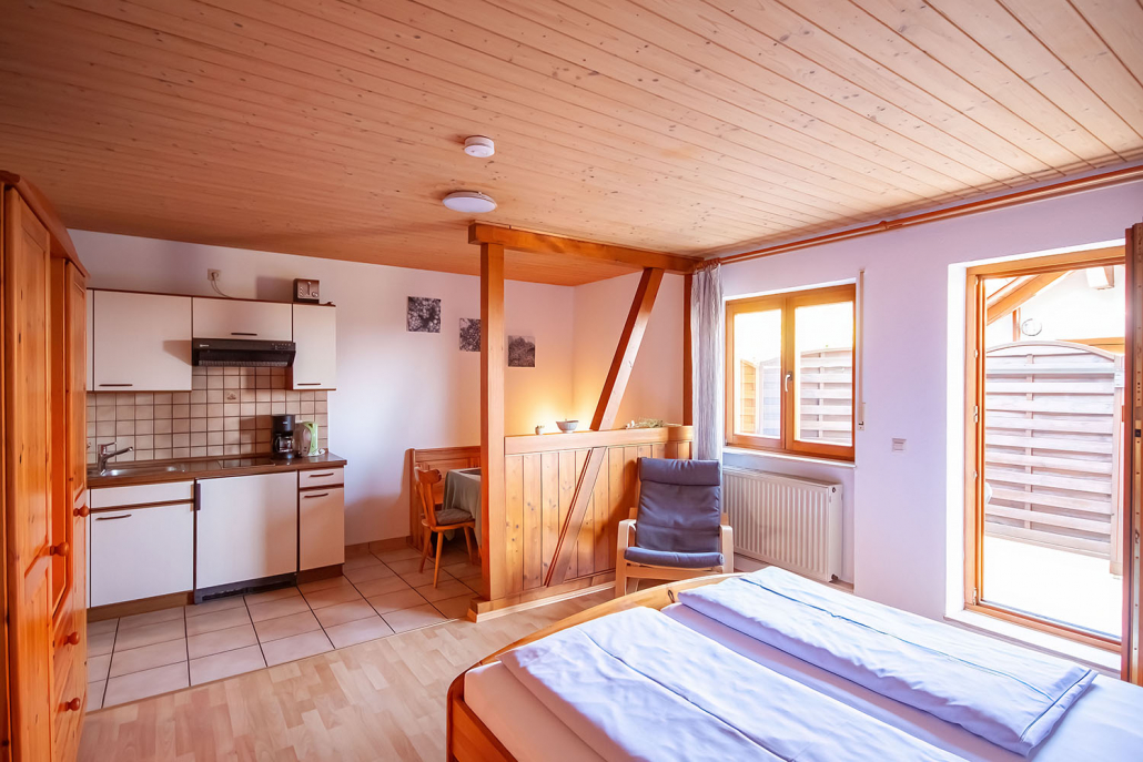 Auf ca. 30 m² empfängt Sie diese 1-Zimmer-Wohnung im 1. Obergeschoss – ideal für bis zu 2 Gäste.